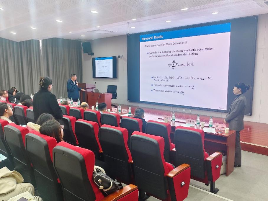 整场报告内容丰富、逻辑严谨,刘永朝教授以其深厚的优化理论功底与清晰的表达,为在场师生展示了分布式学习与决策依赖分布交叉领域的最新进展,拓宽了大家的学术视野,也为相关研究提供了重要的方法论启示。